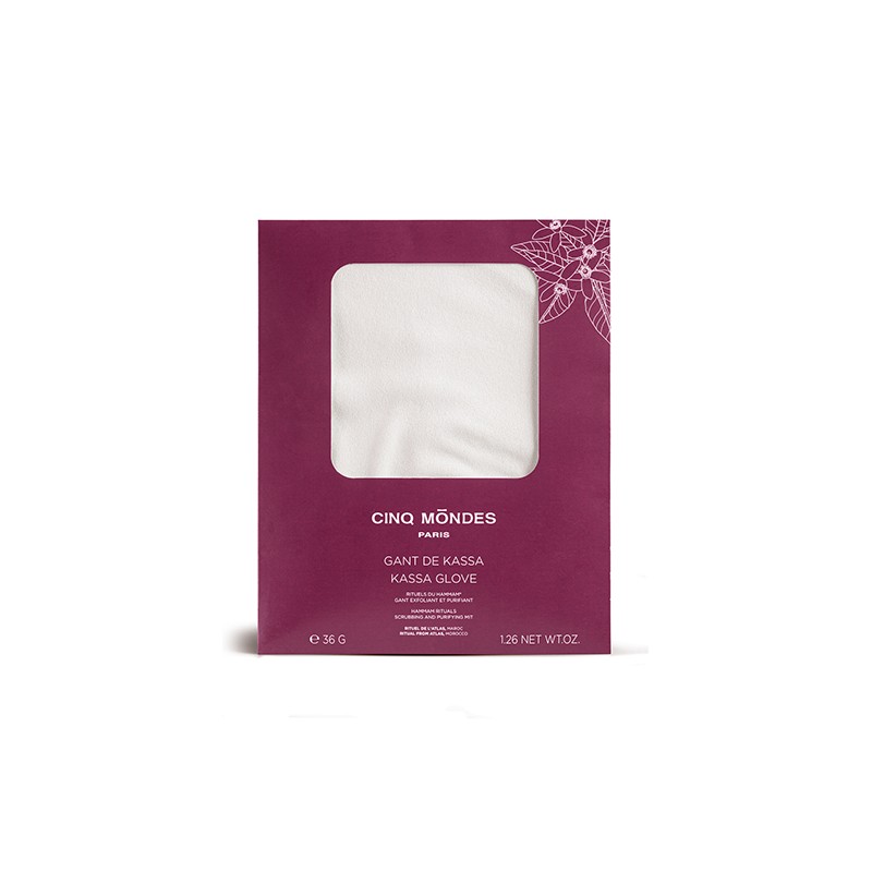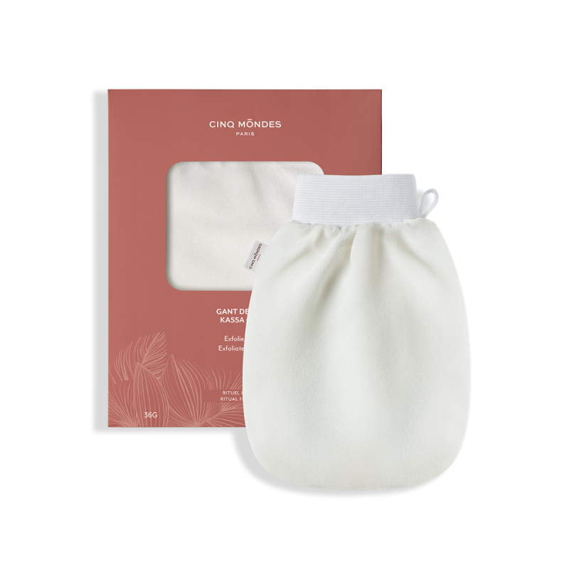En fine crêpe de cellulose végétale, le Gant de Kassa sert à éliminer les peaux mortes, les impuretés et chasser les toxines.