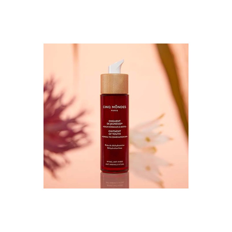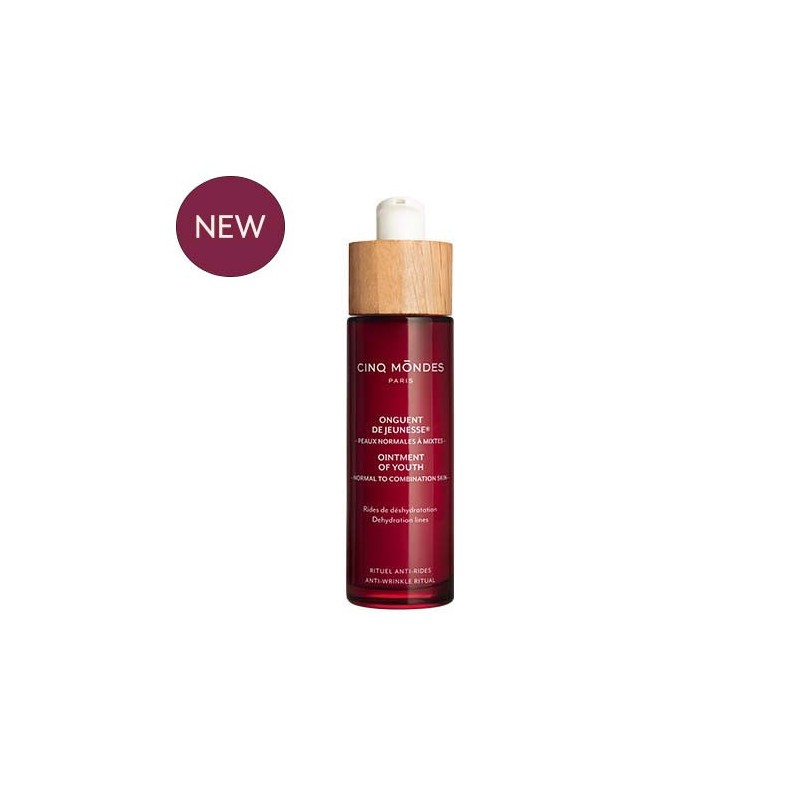 Sa texture fluide et légère s'étale délicatement sur la peau, laissant un fini doux sans effet gras. S'inspirant de la pharmacopée traditionnelle chinoise, Cinq Mondes a élaboré les Onguents de Jeunesse® pour restaurer l'hydratation, prévenir les rides de déshydratation et lutter contre le vieillissement cutané.