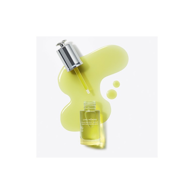 L’Élixir Précieux Purifiant est un concentré puissant d’huiles 100% végétales, riches en acides gras essentiels (Oméga 3 et 6) spécialement conçu pour les peaux mixtes à grasses. Il associe les bénéfices de l’huile de Cumin Noir, l’huile Sacrée des Pharaons traditionnellement utilisée en Égypte pour ses propriétés purifiantes, à l’actif expert Polyphénols, pour rétablir l’équilibre de la peau en régulant l’excès de sébum et ainsi diminuer les imperfections. Inspiré des oasis égyptiennes et de leurs effluves botaniques, sa senteur évoque une herboristerie antique. À utiliser en association avec l’Onguent de Jeunesse Peaux normales à mixtes pour une peau durablement plus saine.