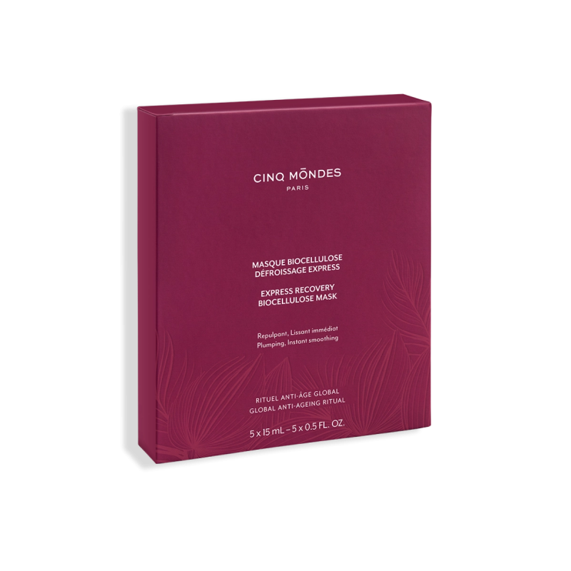 Issu du savoir-faire professionnel du Spa Cinq Mondes et de l’extrême technicité de son Soin Massage anti-âge japonais « Ko Bi Do », le Masque Biocellulose Défroissage Express lisse les traits et améliore l’aspect de la peau comme après une bonne nuit de sommeil.